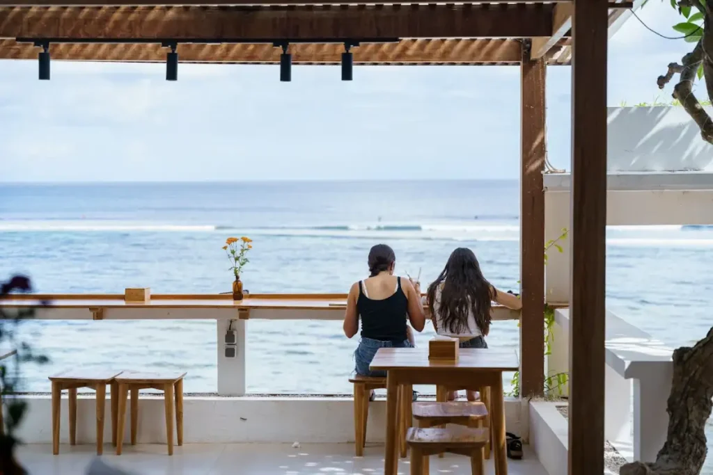Jimmy Beach Cafe is a beachfront cafe perched on a cliff overlooking Balangan Beach. Known for its stunning sunset views and laid-back atmosphere, this spot offers both indoor and outdoor seating with direct beach access. The minimalist modern design creates an Instagram-worthy backdrop. Moderately priced with no minimum spend, it’s perfect for breakfast, lunch, dinner, or sunset cocktails.